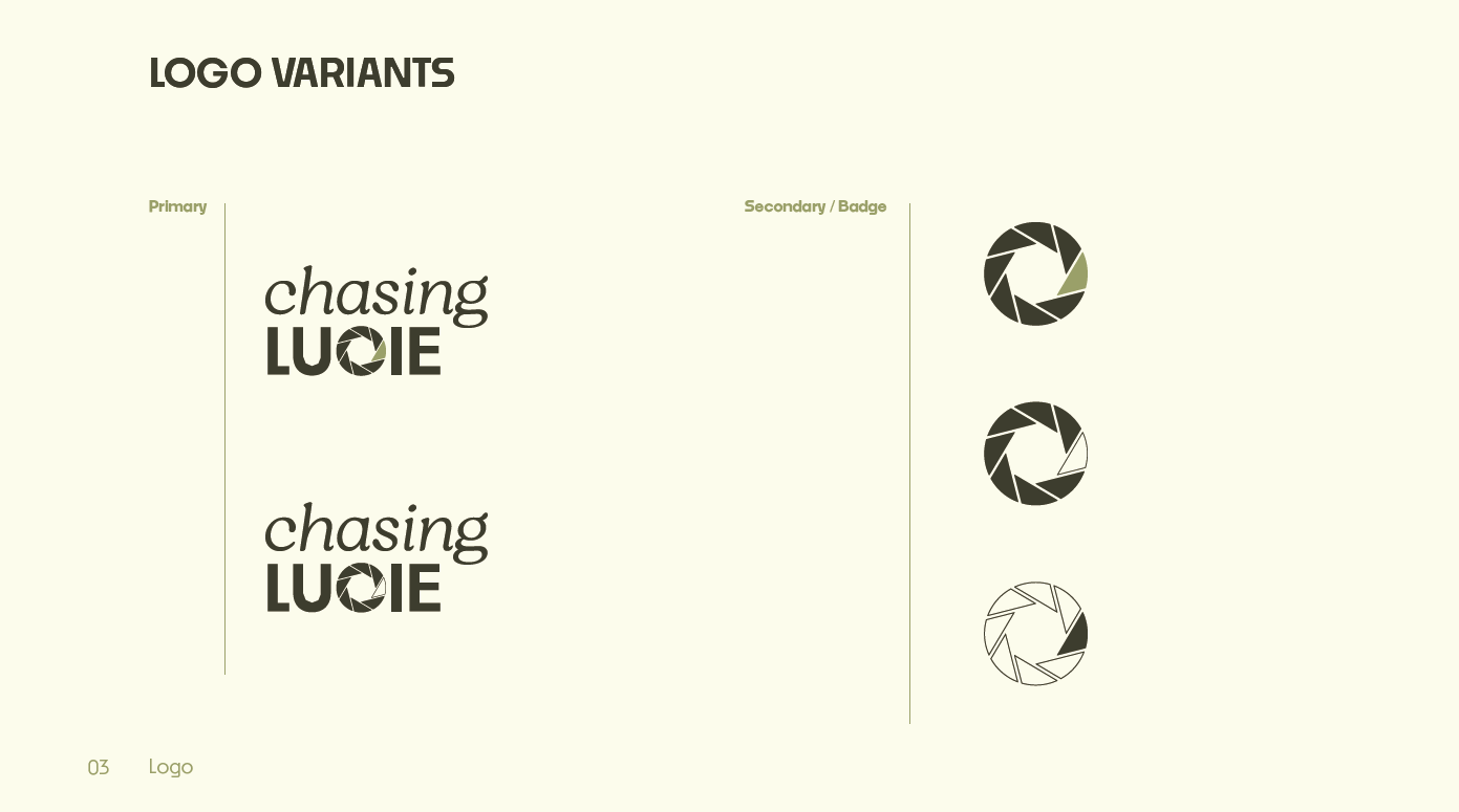 Chasing Lucie is a brand identity project built around balance, freedom, and an earthy aesthetic. My approach focused on creating a cohesive visual system that reflects creativity, international living, and a close connection to nature, while remaining flexible across digital, lifestyle, and service-based applications.