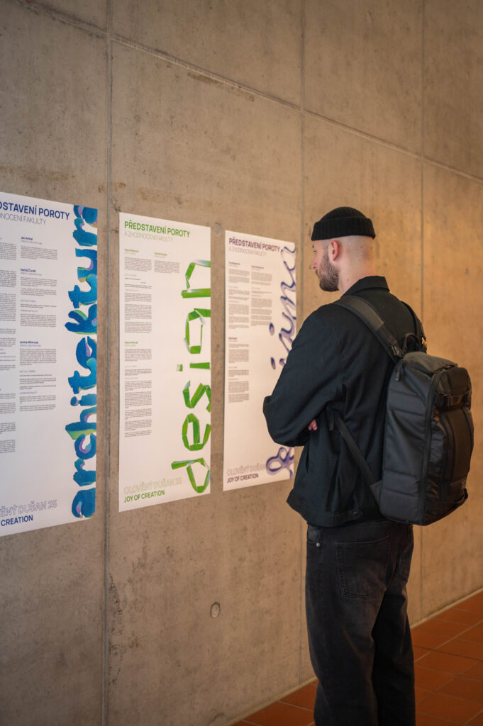 This year’s edition was titled Joy of Creation, and the entire visual identity was conceived in the same spirit. The core element consists of three typefaces created from three different scanned materials, each representing one of the faculty’s disciplines: Architecture, Landscape Architecture, and Design. Using handheld scanning, we also captured various materials and textures from the faculty’s spaces, which were then used to create all promotional and printed materials. The result is a strong visual identity for this edition that emphasizes the main ethos of the competition: the joy of creating.